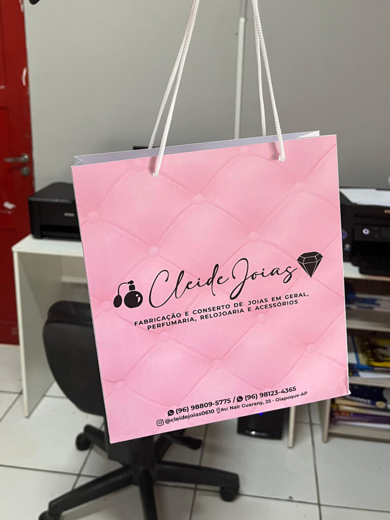 Sacolas personalizadas, em papel offset 180g com alça de cordão de nylon. Diversos tamanhos.