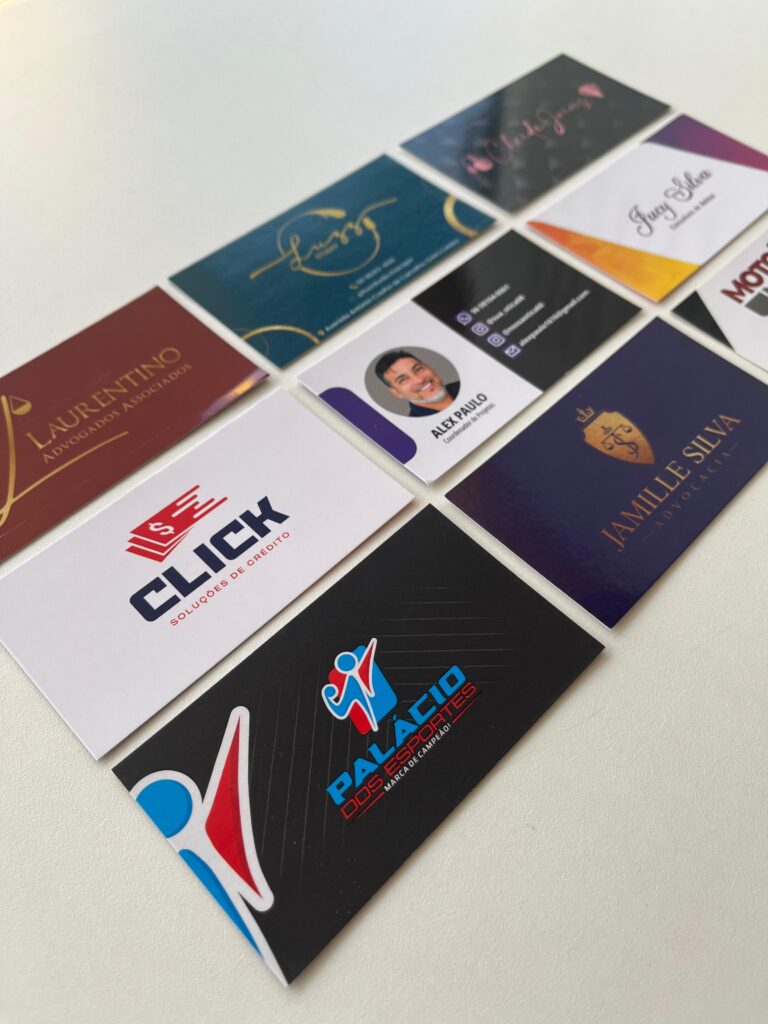 Cartões de visita, do mais básico ao mais sofisticado, com acabamento brilho ou fosco.